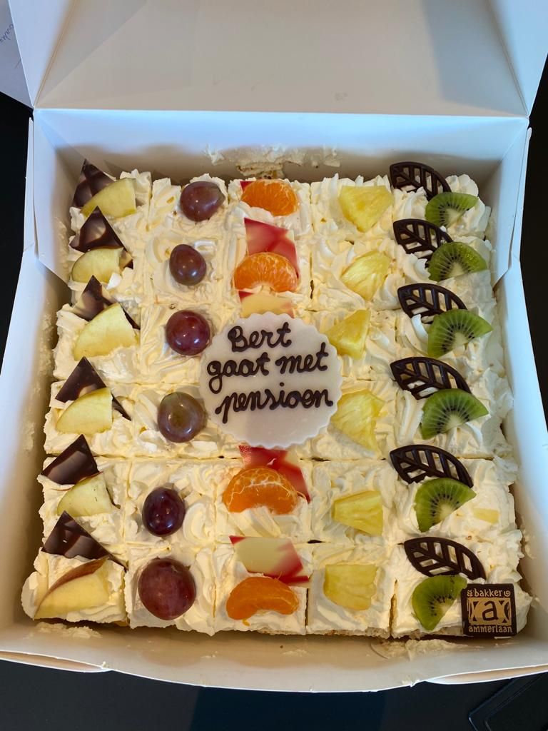 Vanmiddag heffen wij het glas op Bert. Op de noodzakelijke gepaste afstand, dat wel. Maar Bert weet dat onze waardering voor zijn jarenlange bijdrage aan ons bedrijf, die afstand ver overstijgt! Hij heeft na die borrel trouwens nog een uitdaging: zijn afscheidscadeau, een prachtige roze fiets, achterin zijn auto zien te krijgen ;-)